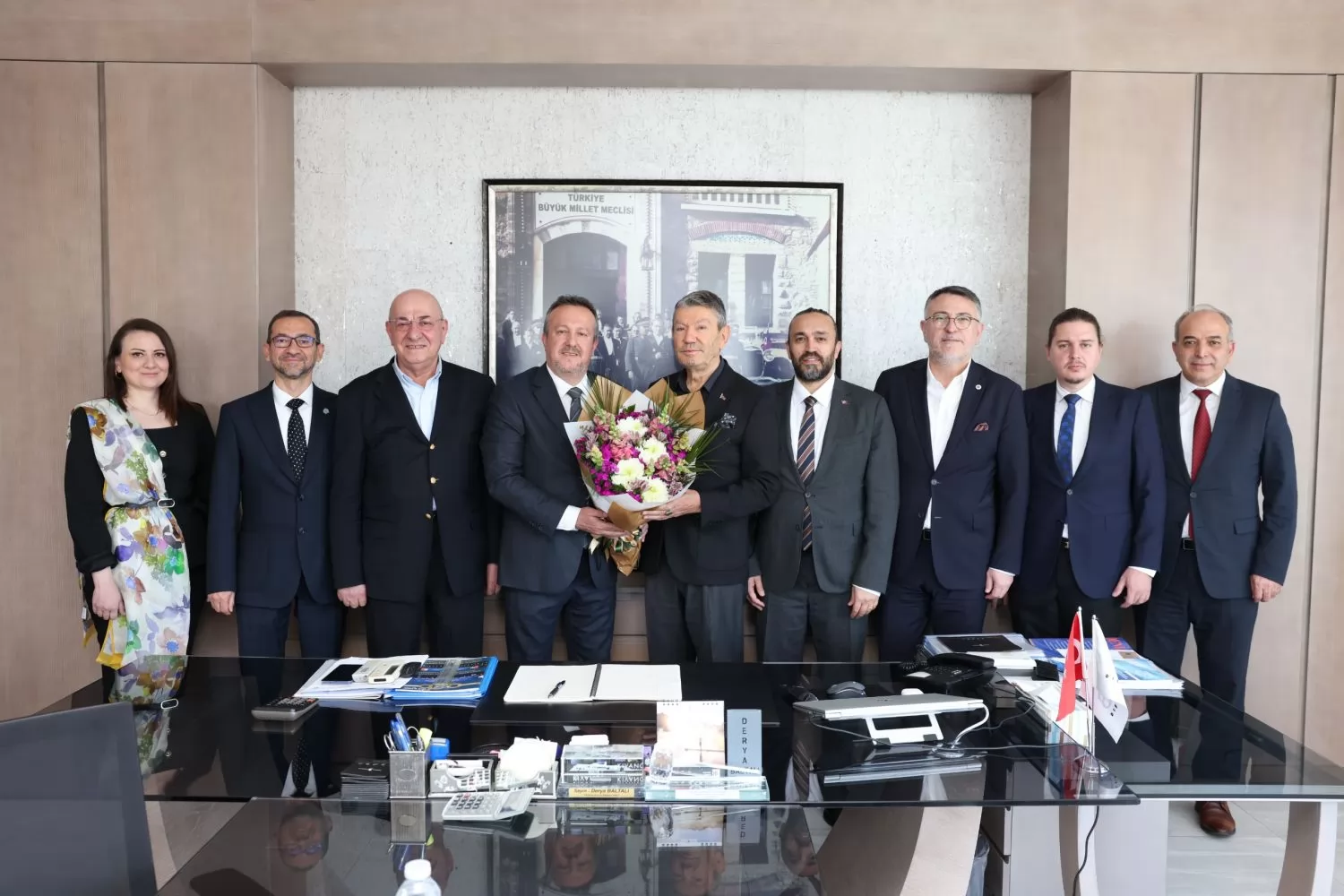 Denizli OSB Yönetim Kurulu Başkanımız Selim Yaymanoğlu, Başkan Vekilimiz Ali Fuat Özel, Yönetim Kurulu Üyelerimiz Cemalcan Sirkeci, Sevde Şensöz Çelik, İbrahim Onur Yıldırım, Orhan Tahtalı ve Bölge Müdürümüz Ahmet Taş, Bölgemize 30 yıl boyunca önemli katkılar sunan önceki dönem Yönetim Kurulu Başkanımız Derya Baltalı’yı ziyaret etti.