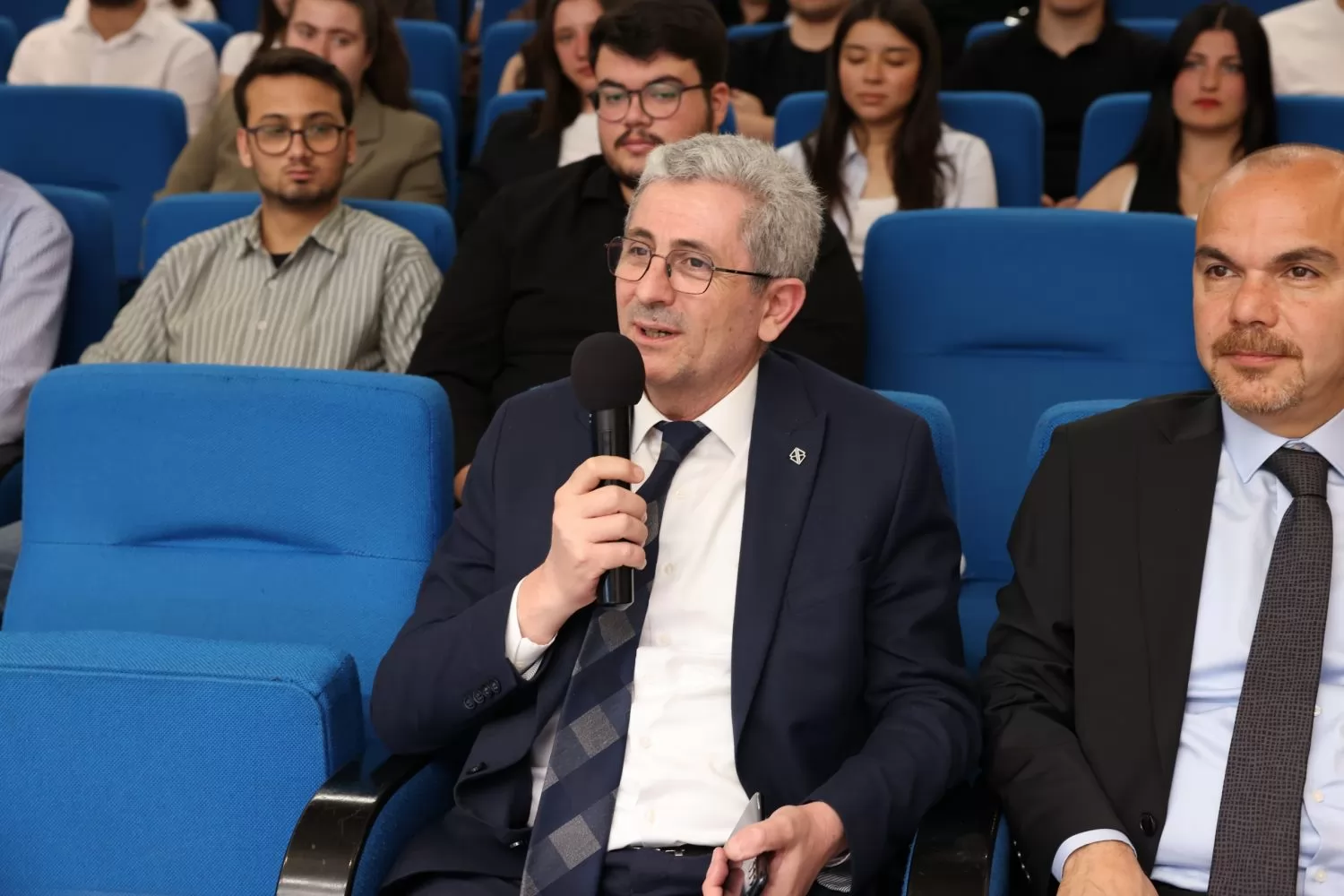Gençlere iş hayatına yönelik önemli tavsiyelerde bulunan Denizli OSB Yönetim Kurulu Başkanı Selim Yaymanoğlu, “Bugünün dünyasında sadece bilgi sahibi olmak yeterli değil; o bilgiyi katma değere dönüştürebilmek asıl farkı yaratıyor. Bizler Denizli OSB’de üretimi teknolojiyle, emeği inovasyonla buluşturarak geleceğin sanayisini inşa ediyoruz. Sizlerden beklentimiz; risk almaktan çekinmeyen, dürüstlüğü ve cesareti öncelik bilen, değişimi yöneten ve kendi hikâyesini yazan bireyler olmanız. Çünkü yarının güçlü Türkiye’si, sizin cesaretiniz ve vizyonunuzla şekillenecek” ifadelerini kullandı.